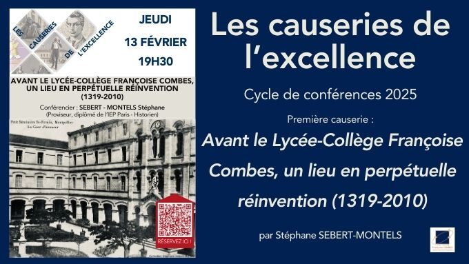 Par admin francoise-combes2, publié le vendredi 12 décembre 2025 13:45 - Mis à jour le vendredi 12 décembre 2025 13:45Jeudi 13 février 19h30 - Avant le lycée-collège Françoise Combes, un lieu en perpétuelle réinvention (1319-2010) par Stéphane SEBERT-MONTELS (Proviseur, diplômé de l’IEP Paris - Historien)