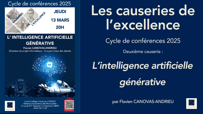 Par admin francoise-combes2, publié le vendredi 12 décembre 2025 13:46 - Mis à jour le vendredi 12 décembre 2025 13:46Jeudi 13 mars 20h - "L'intelligence artificielle générative" par Flavien CANOVAS-ANDRIEU - Enseignant en Intelligence Artificielle au CNAM (Directeur de projets informatique - Groupe Caisse des Dépôts) -