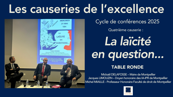 Par admin francoise-combes2, publié le vendredi 12 décembre 2025 13:51 - Mis à jour le vendredi 12 décembre 2025 13:51Quatrième Causerie de l'excellence au lycée Collège Françoise Combe avec Mickaël DELAFOSSE – Maire de Montpellier, Jacques LIMOUZIN – Doyen honoraire des IA-IPR de Montpellier, Michel MIAILLE - Professeur Honoraire Faculté de droit de Montpellier -
