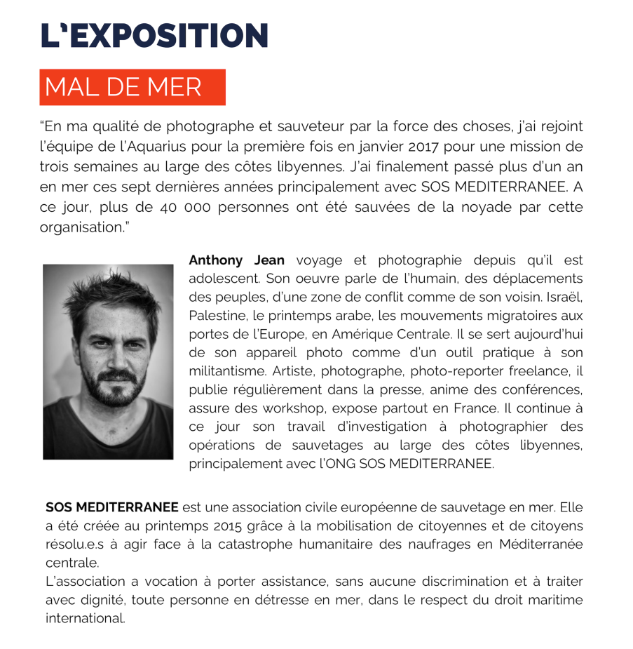 Exposition SOS Méditerranée : Mal de mer, photographies d'Anthony Jean