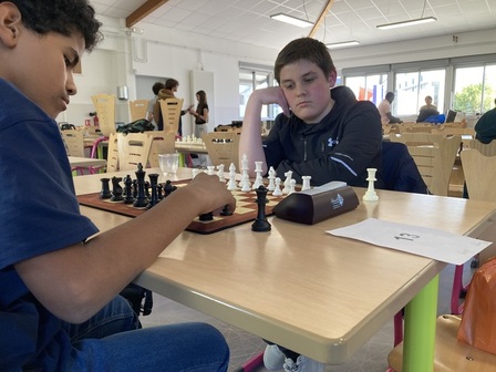 De 14h à 17h, Henzo, Victor, Keiran, Saad et Ryan ont disputé six parties, arbitrées par un professionnel du Club de Montpellier. Nous avons eu quelques joueurs parmi les dix meilleurs mais c'est le collège Clémence Royer qui a remporté le tournoi. Notre équipe est arrivée quatrième, une belle performance pour une première participation.